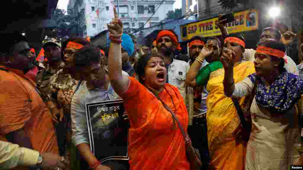 চিন্ময় দাসের অবিলম্বে মুক্তির দাবিতে প্রতিবাদকারীরা কলকাতার বাংলাদেশী ডেপুটি হাইকমিশনের মিছিল করে যান এবং প্রতিবেশী দেশে সংখ্যালঘুদের উপর হামলার বিরুদ্ধে স্লোগান দেন।