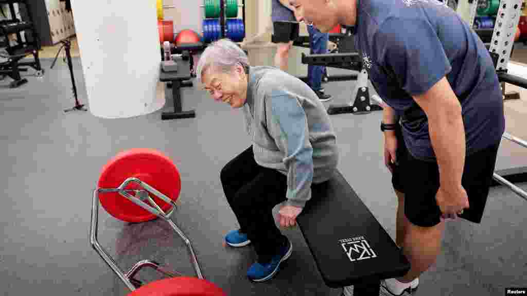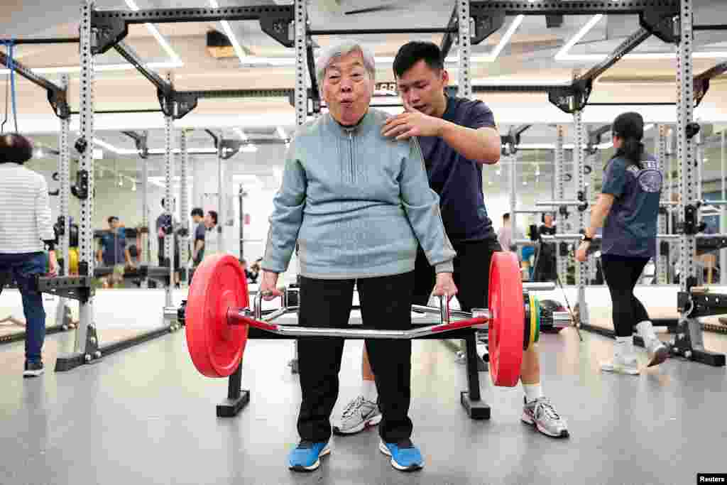 তাইওয়ানে এক ভার-উত্তোলন প্রতিযোগিতায় অনায়াসে ৩৫ কিলোগ্রাম বার তুলেছেন ৯০ বছর বয়সী চেং চেন চিন-মেই। এই দৃশ্য দেখে উচ্ছ্বাসে ফেটে পড়েন উপস্থিত জনতা। শনিবার, ২১ ডিসেম্বর।